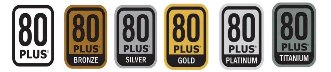 Certificação 80 Plus: Esta certificação é atribuída a fontes de alimentação com um rendimento (relação entre a potência consumida e a energia fornecida) maior de 82%, 20, 50 e 100% de carga. É garantido que, pelo menos, 80% da energia recebida na entrada é efetivamente transmitida para o computador (por exemplo, para entregar 250 W, uma fonte de alimentação de 500 W não deve consumir mais do que 300 W). Os níveis de certificação que existem são: